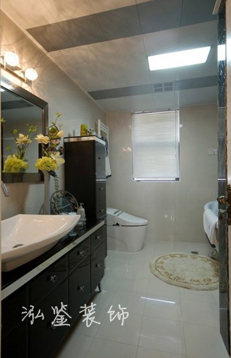 3、頂面——衛(wèi)生間的頂部防潮,遮掩最重要。最好采用防水性能較好的PVC扣板或鋁扣板集成吊頂做吊頂,這種扣板可以安裝在龍骨上,還能起到遮掩管道的作用。還可以用玻璃和半透明板材等做吊頂。另外,也可用防水涂料刷頂。