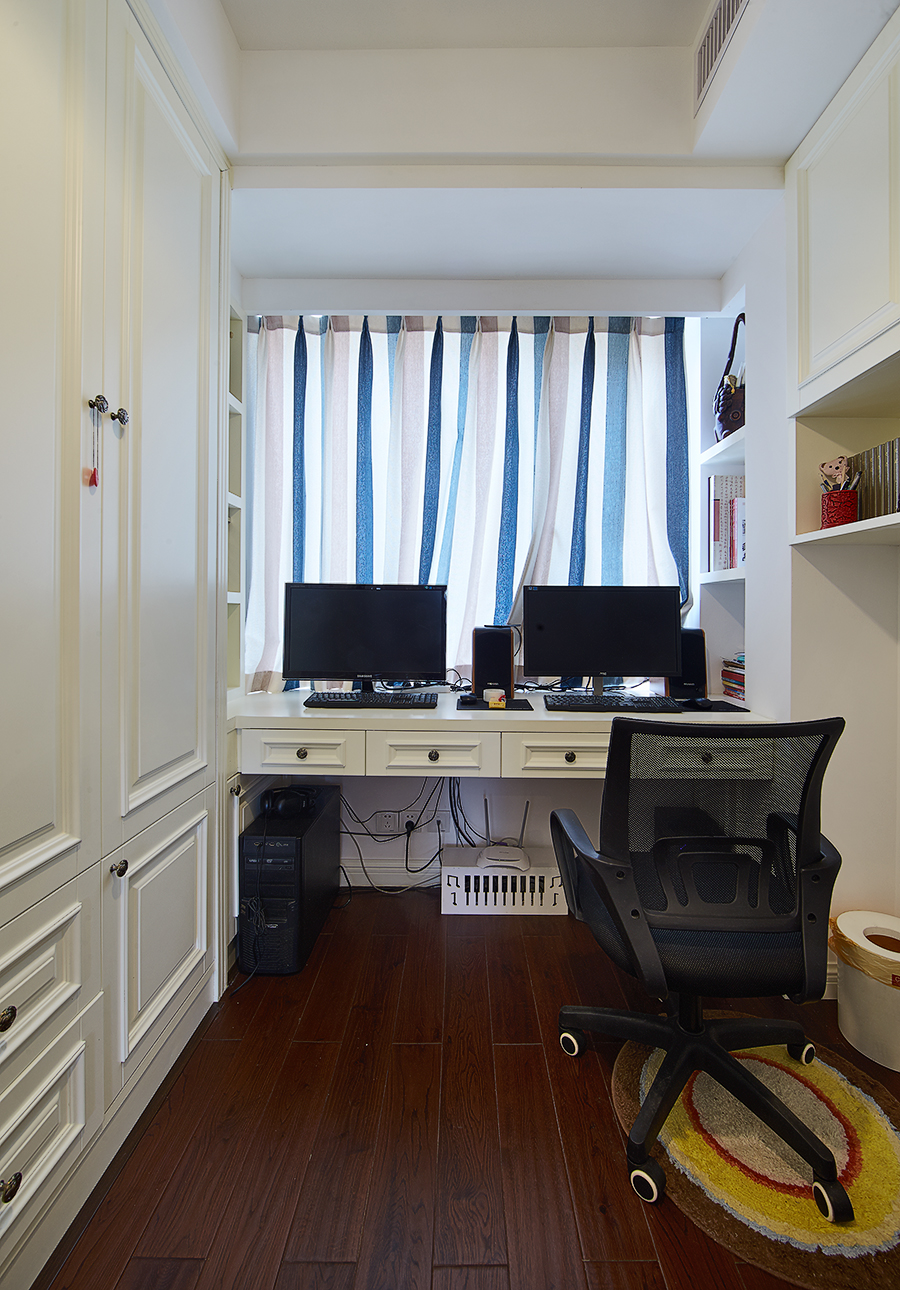 書房是家中電器對照集中之處, 除了電視、空調(diào)等少用家電之外,還要設(shè)置好電腦、打印機、掃描儀、聲響的電源及網(wǎng)絡(luò)接口。