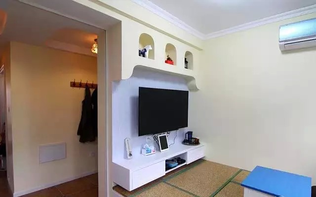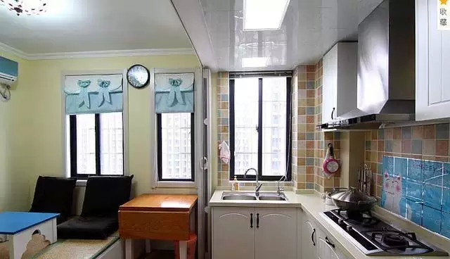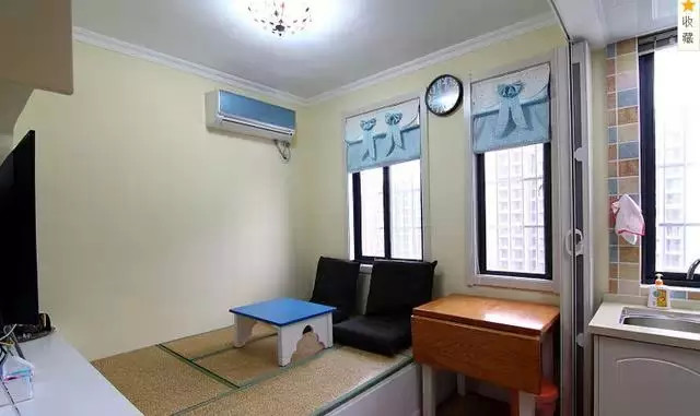 1.把原來的次臥做了榻榻米,并與廚房形成開放式空間,用推拉門分隔,平時可以作為休閑區(qū)域,有客人的時候,拉起推拉門就是一個小房間。