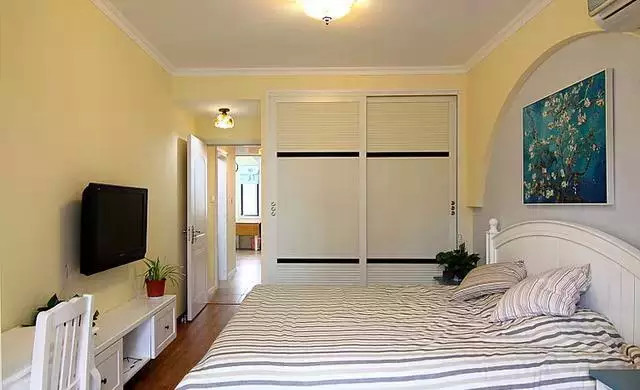 主臥,我們把衣柜的空間往小房間推了,并且把陽臺包了進(jìn)來,這樣看著是不是感覺不小啊。