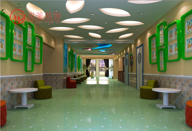 對(duì)于幼兒期的孩子,合肥幼兒園裝修的門廳一般空間都比較大,在形象上能夠展示自己的規(guī)模和特色,所以門廳的裝飾須透出其辦園特色和文化。在裝飾設(shè)計(jì)初期可以利用門廳現(xiàn)有界面,巧妙裝飾不同形狀、不同面積的壁畫,體現(xiàn)獨(dú)有的空間的文化內(nèi)涵。壁畫部分正好掩飾其他部位的不協(xié)調(diào)的建筑,拐角墻之類可以裝飾食譜系列掛板,展示幼兒食譜和活動(dòng)剪影,凸現(xiàn)活潑、有趣和實(shí)用的效果。